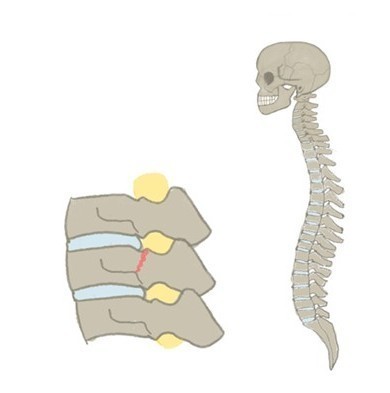 背骨(腰椎)の一部が疲労骨折を起こし、骨の前側と後側が離れてしまう状態をいいます。