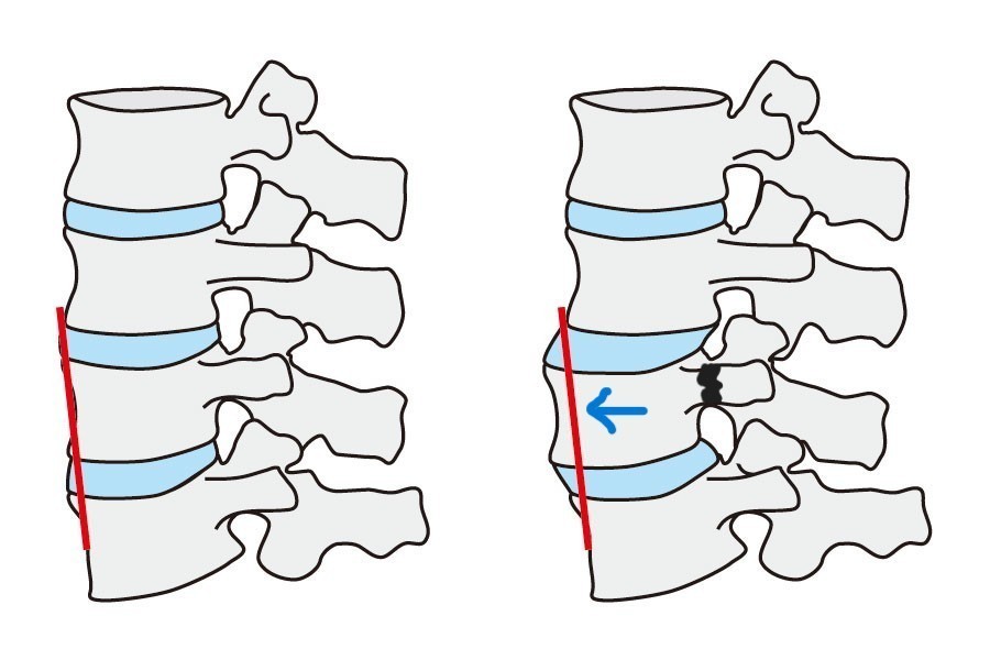 腰椎分離症・すべり症はいずれも、腰椎が前方へ滑ってしまうことで発症します。